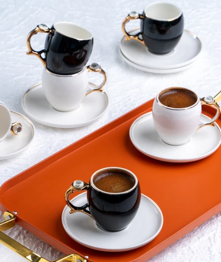 ACAR VOYAGE NOIR Set de 6 tasses à café en porcelaine