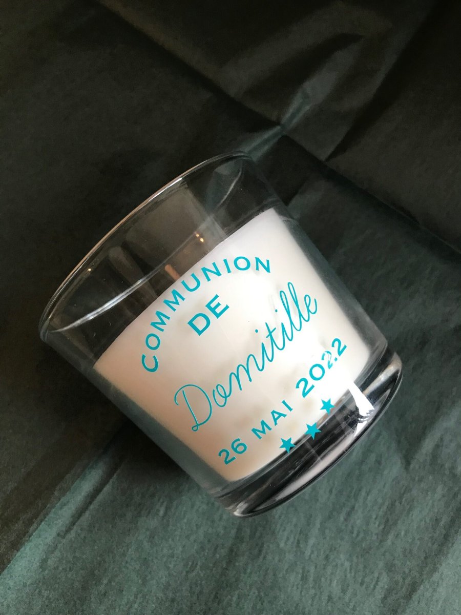 Bougie parfumée vanille douce dans un verre de 7 cm ;
