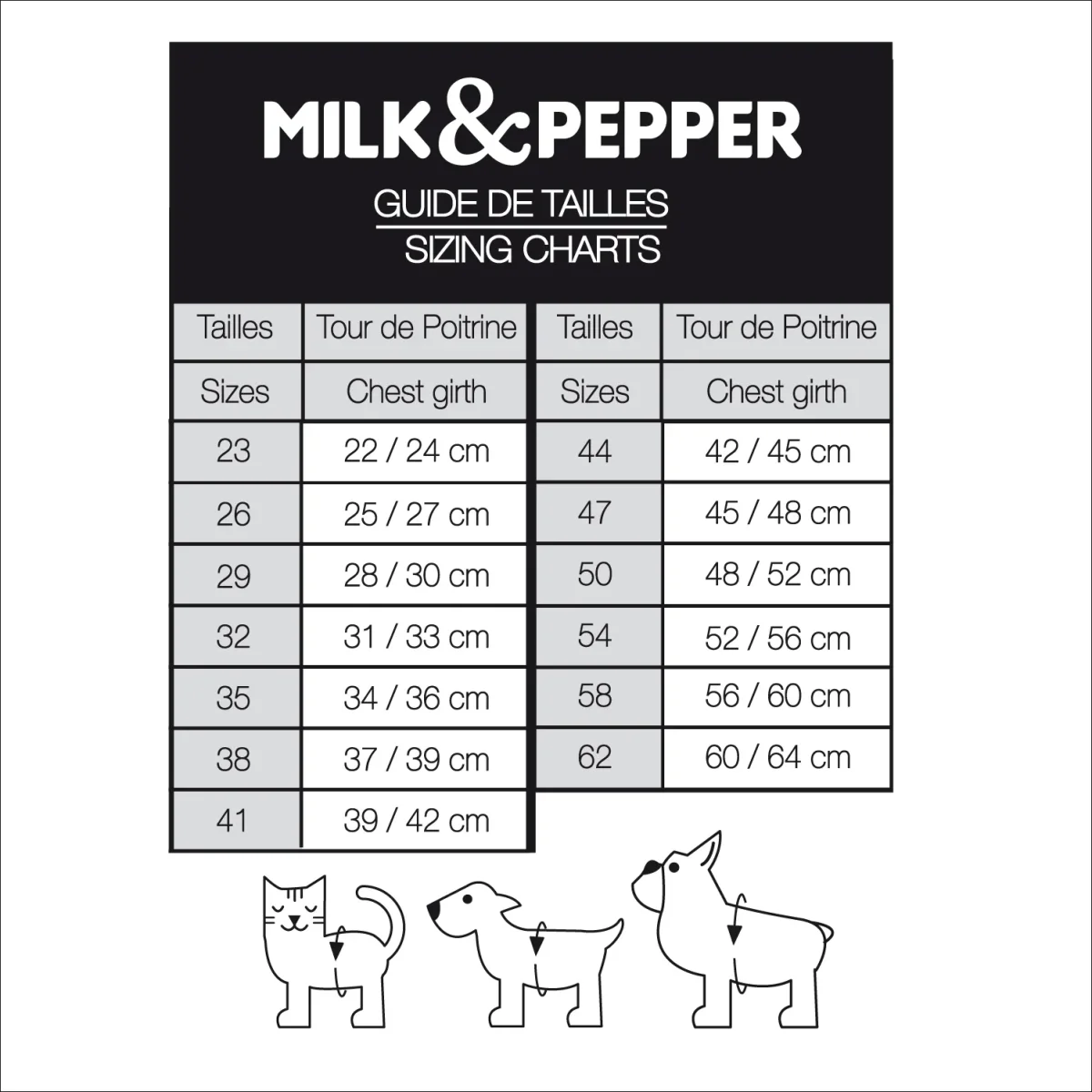 Disponible en 3 tailles pour que chaque harnais s’adapte aux morphologies de vos chiens de taille petite, moyenne et grande.