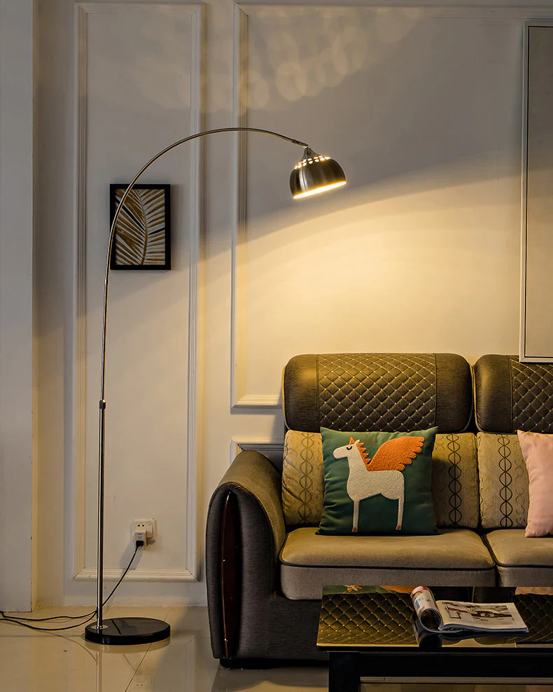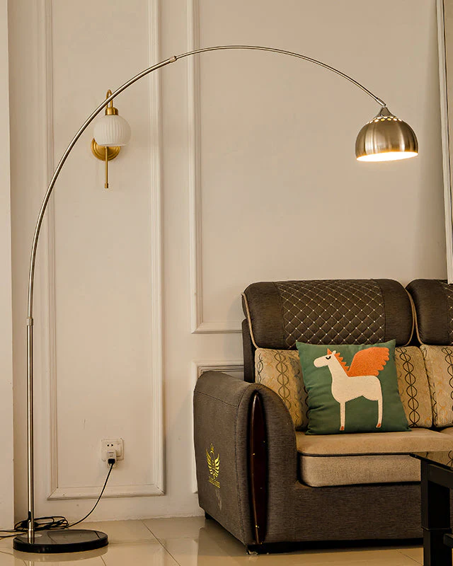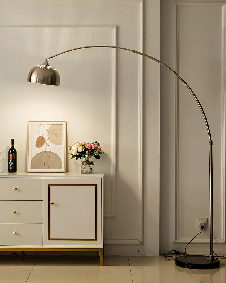 Lampadaire Arc avec Abat-jour Dôme Inox – H180 à 231 cm
