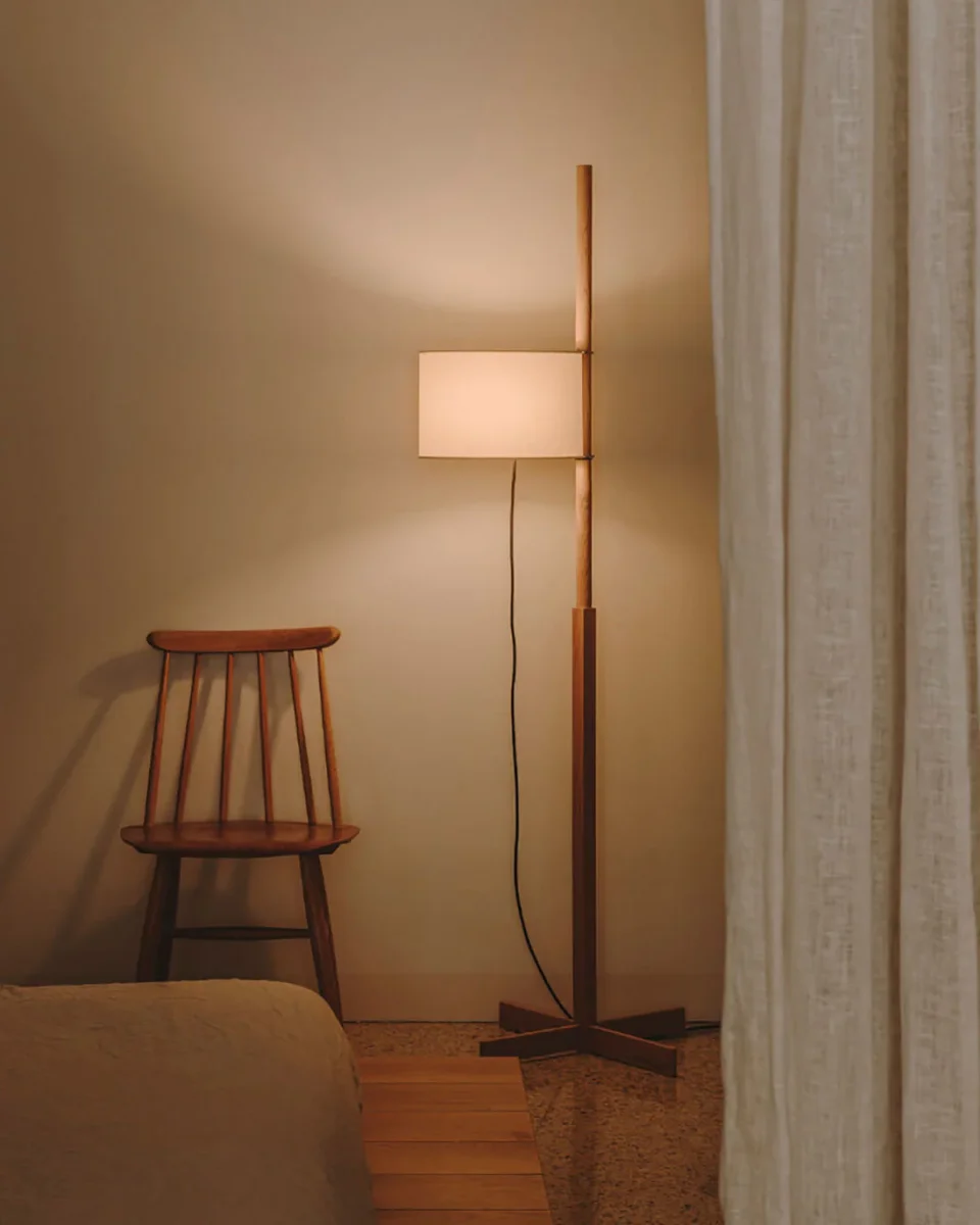 Apportez une ambiance chaleureuse et élégante à votre intérieur avec ce lampadaire en bois et tissu. Son design contemporain, associant une base en noyer naturel à un abat-jour en tissu raffiné, s’intègre parfaitement dans un salon ou une chambre. Ce luminaire est idéal pour créer une atmosphère douce et accueillante, tout en ajoutant une touche décorative intemporelle.