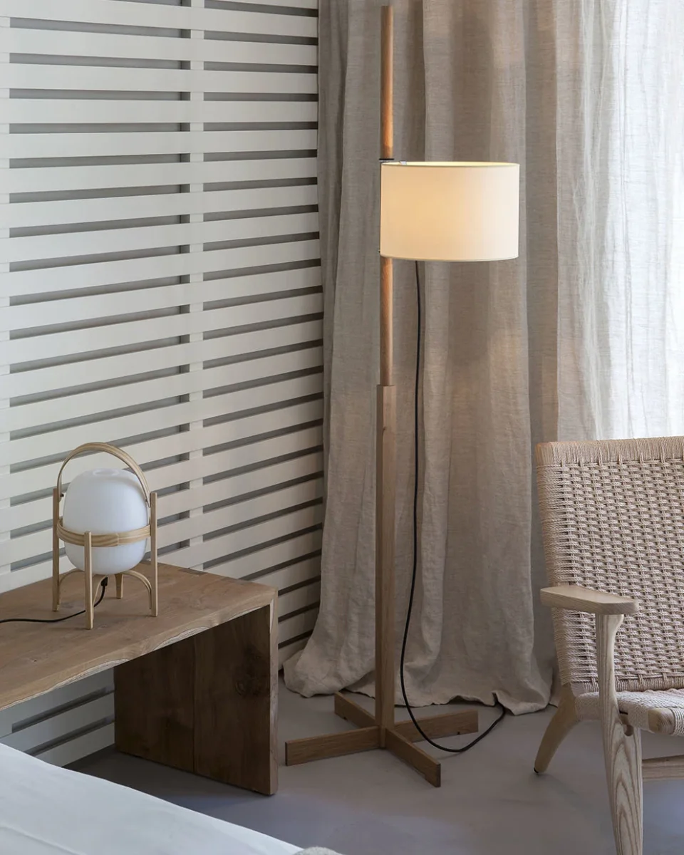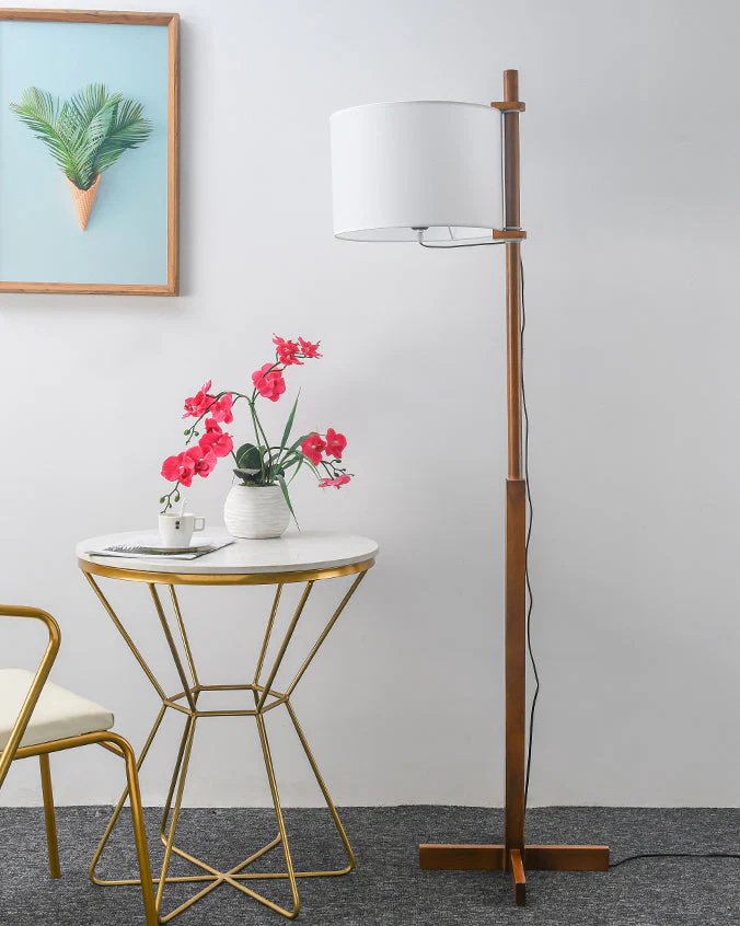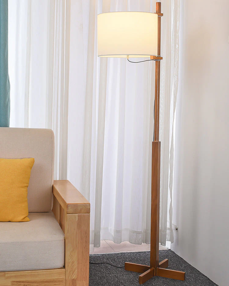 Lampadaire Bois avec Abat-Jour en Tissu – H165 cm