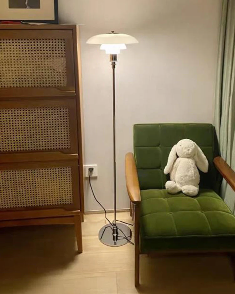 Le Lampadaire Fjord Chromé est un hommage à l’élégance scandinave, alliant pureté des lignes et ambiance lumineuse douce.