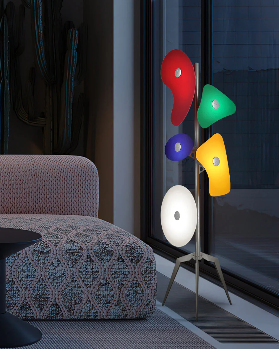 Ajoutez une touche d’audace artistique à votre intérieur avec le Lampadaire Trépied Prisma. Son design post-moderne à la fois minimaliste et expressif s’intègre parfaitement dans un salon contemporain ou une chambre raffinée. Avec ses trois pieds élégants et ses abat-jour en acrylique translucide, ce luminaire devient une véritable sculpture lumineuse.
