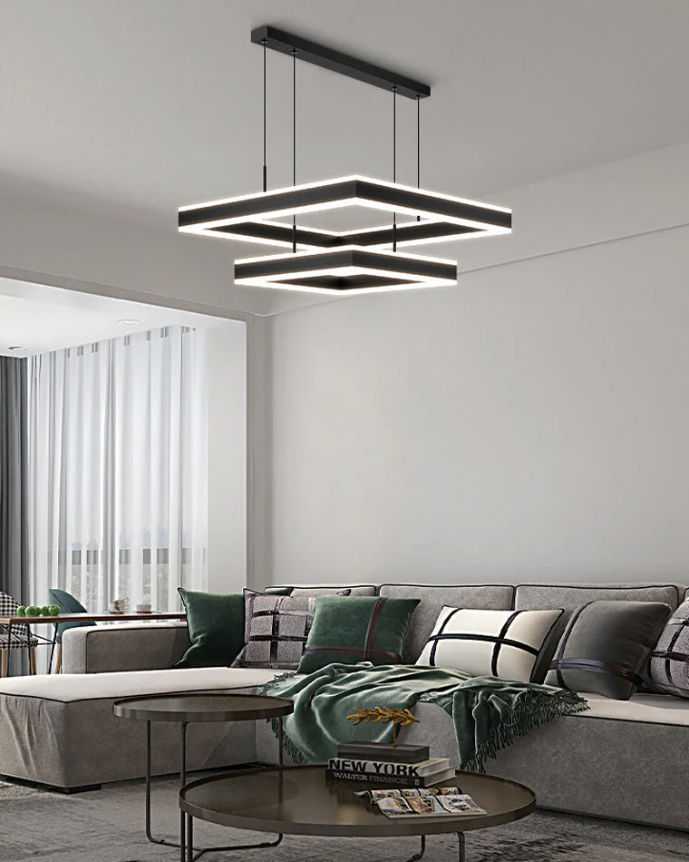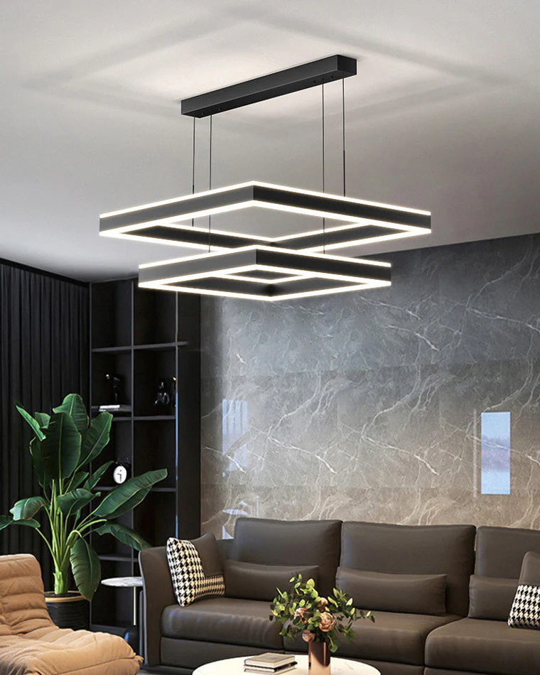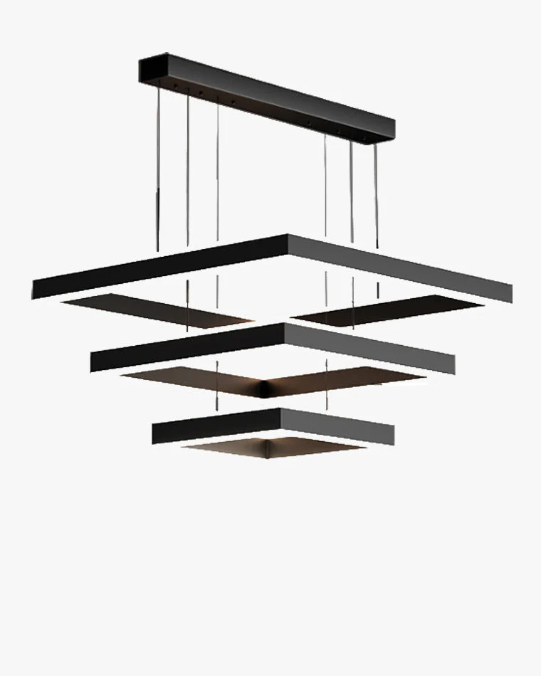 Lustre « Cascade Carrée » – Noir Multi-Niveaux à LED à Intensité Variable