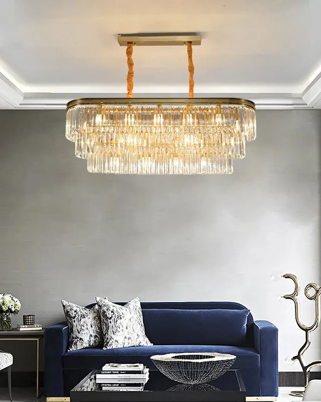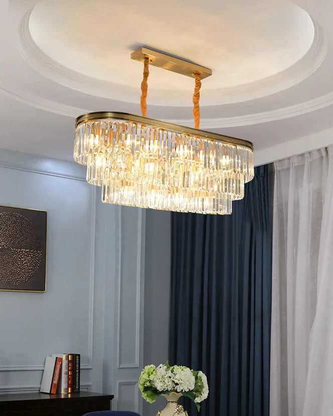 Lustre « Cascade Impériale » – Élégance Ovale en Cristal à Étages