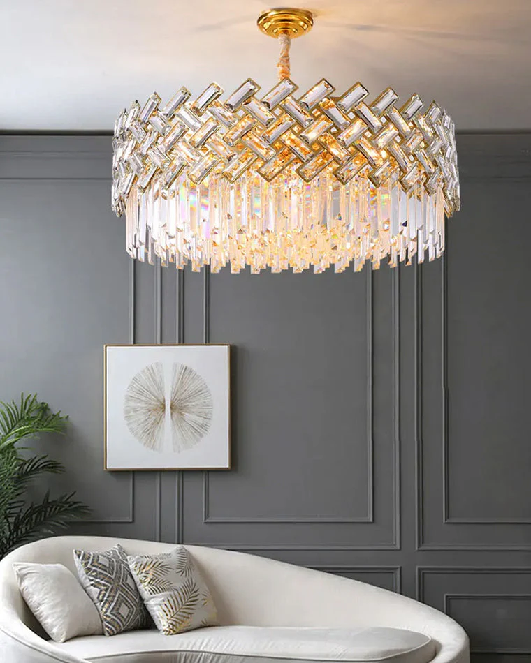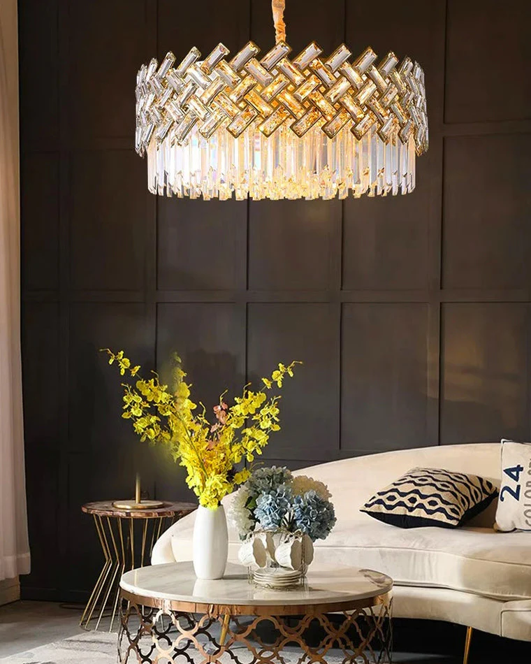 Tel un diadème suspendu, le lustre Couronne Impériale dévoile un anneau de cristaux facettés qui captent chaque rayon de lumière pour le transformer en éclat pur. Sa structure circulaire en finition dorée évoque à la fois la noblesse d’un palais et la modernité d’un design minimaliste. Qu’il surplombe une table de salle à manger, un salon ou une entrée, ce luminaire incarne une élégance sereine et éclatante. La lumière traverse les prismes avec délicatesse, créant une atmosphère douce et raffinée.