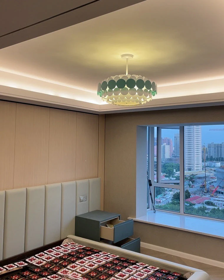 Ajoutez une note de douceur artistique à votre intérieur avec le Lustre Festonné Scandinave. Inspiré du design nordique minimaliste, ce luminaire se distingue par ses disques festonnés superposés aux teintes douces et colorées (blanc, bleu, rouge ou noir). Son esthétique légère et créative en fait un choix idéal pour sublimer une salle à manger, un salon ou une chambre avec modernité et élégance.