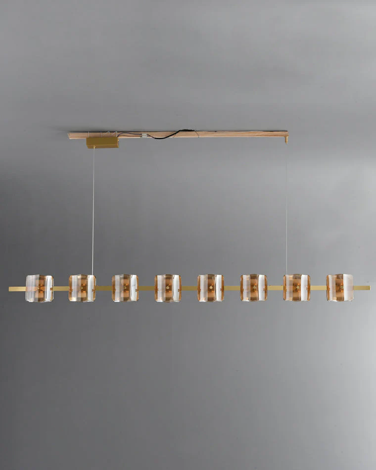 Le lustre Linéa Impérial séduit par sa silhouette allongée et son alliance harmonieuse de laiton doré et de verre texturé. Conçu pour apporter une lumière généreuse et maîtrisée, ce luminaire élégant s’intègre parfaitement dans un intérieur contemporain, au-dessus d’une table à manger ou dans un couloir majestueux.