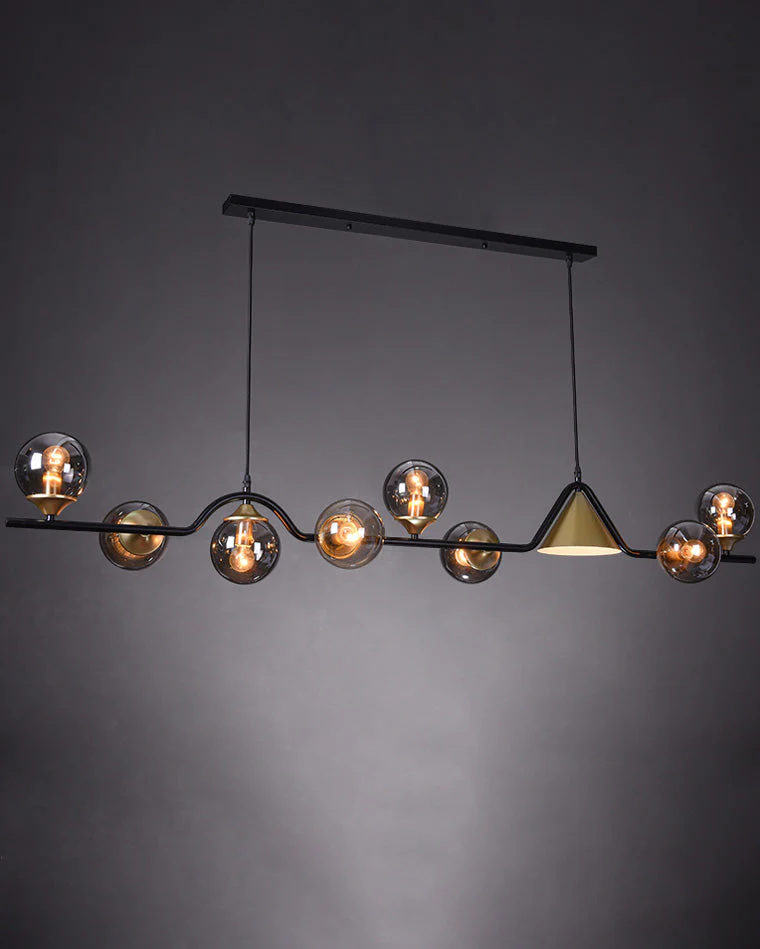 Le Lustre Linéaire en Globe de Verre est une pièce lumineuse raffinée qui ajoute un caractère visuel distinctif à toute pièce. Son design linéaire et ses globes de verre soigneusement choisis créent une lumière douce et agréable. Parfait pour ceux qui recherchent un éclairage élégant et moderne, ce lustre transforme votre espace avec une touche de sophistication subtile et contemporaine.