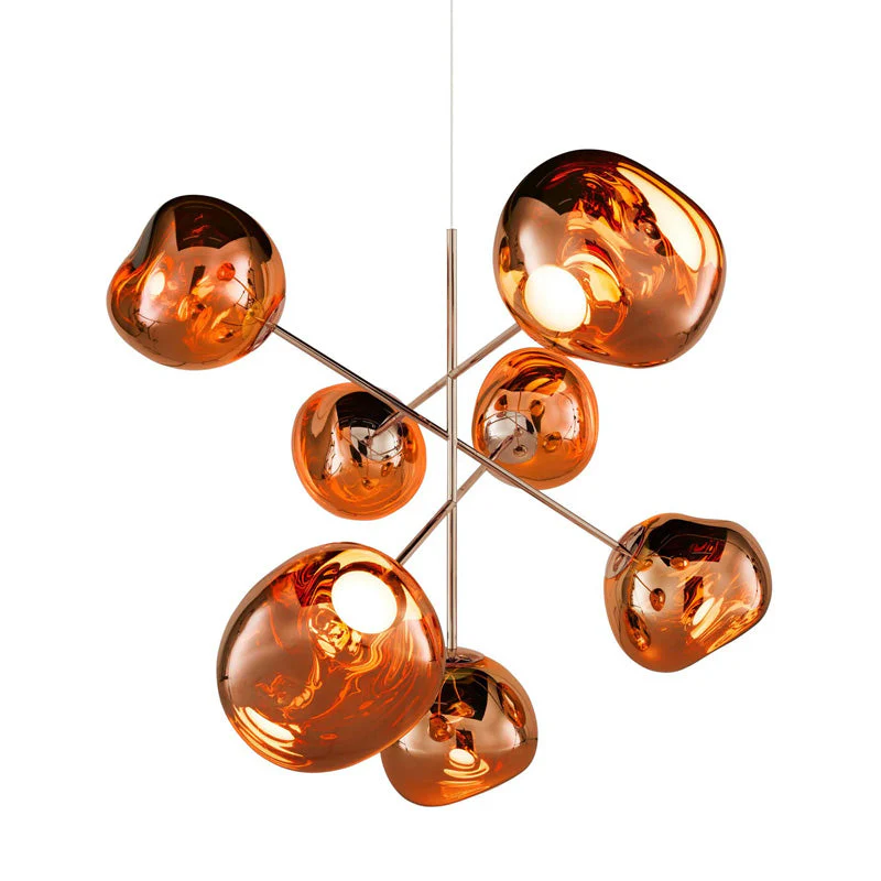 Faites entrer la modernité céleste dans votre intérieur avec le lustre Orbite Miroir. Ce luminaire spectaculaire mêle une structure Spoutnik à des globes en acrylique fumé au fini chromé et or rose, créant un jeu de reflets fascinant. Parfait pour un salon au style contemporain ou un loft au caractère affirmé, il devient à lui seul un élément de décoration saisissant, presque sculptural.