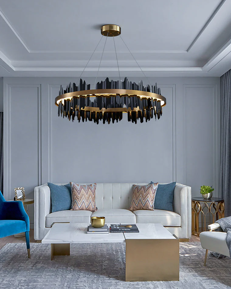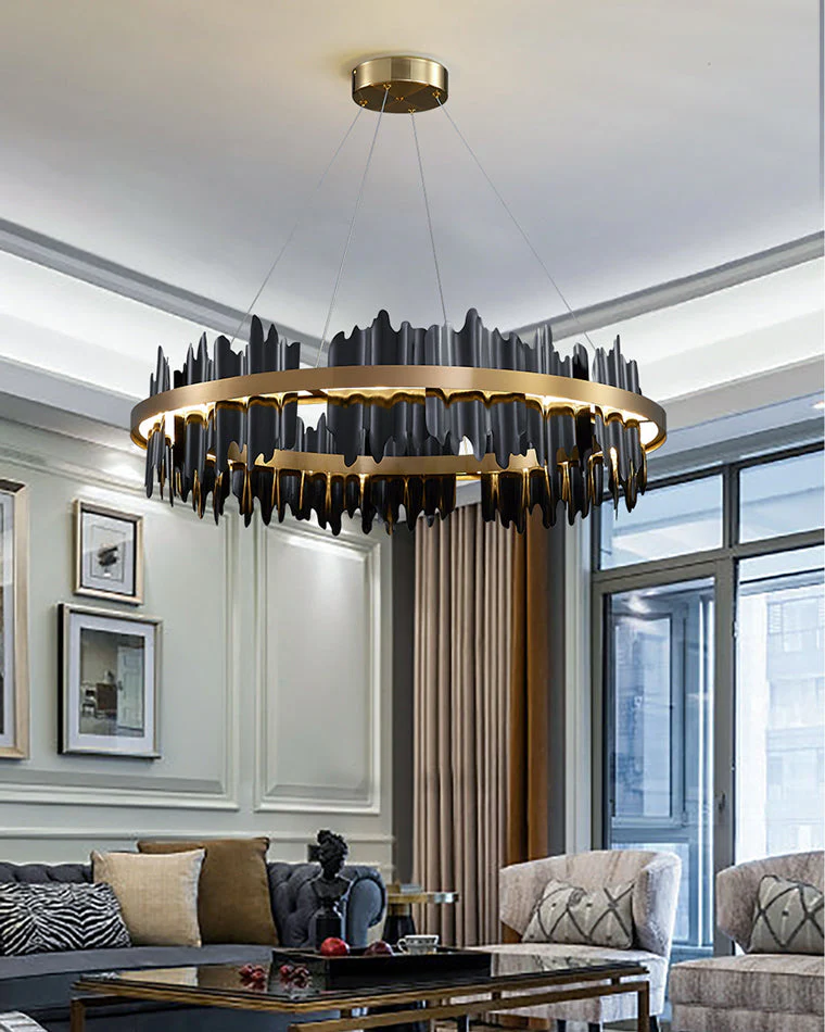 Le Lustre Rond Iceberg Noir & Or est une véritable œuvre d’art lumineuse. Ses éléments métalliques aux finitions contrastées créent un effet sculptural et contemporain, parfait pour les intérieurs sophistiqués. Son éclairage LED personnalisable permet d’adapter l’ambiance à votre espace, faisant de ce luminaire une pièce maîtresse incontournable.