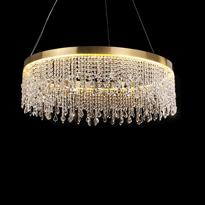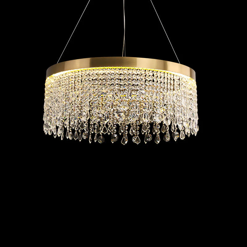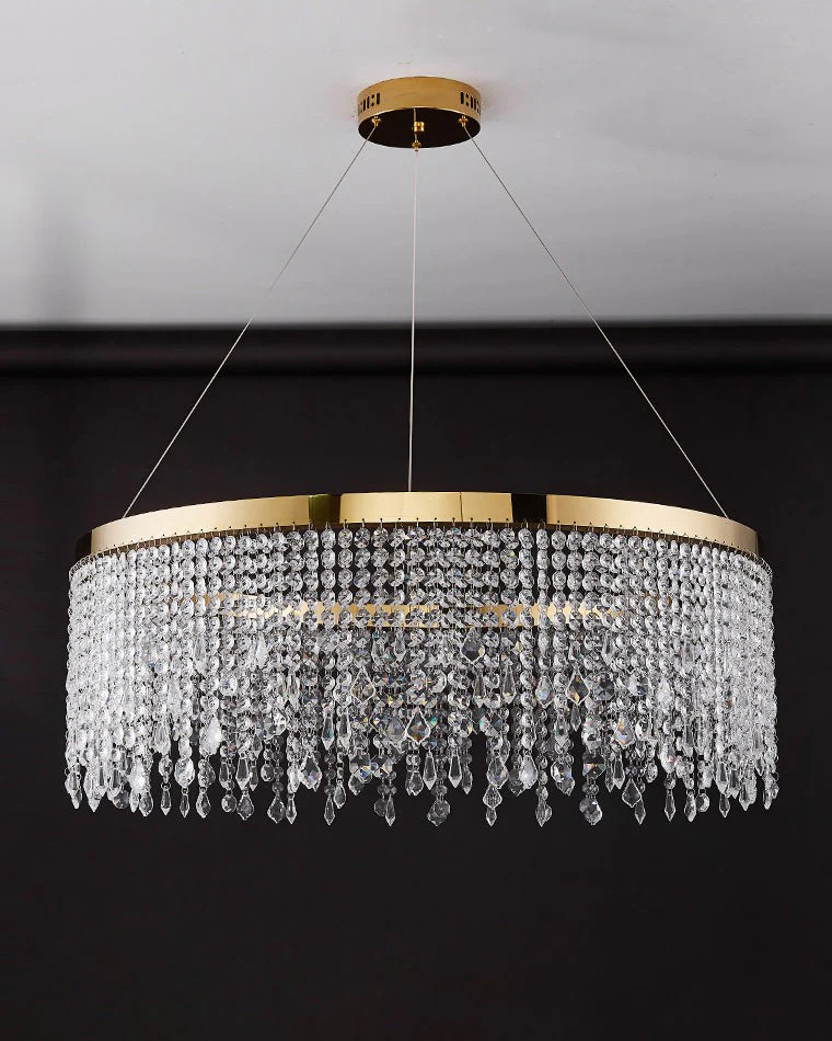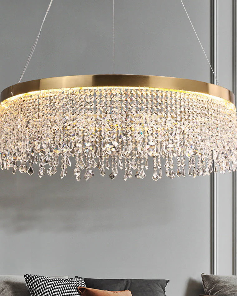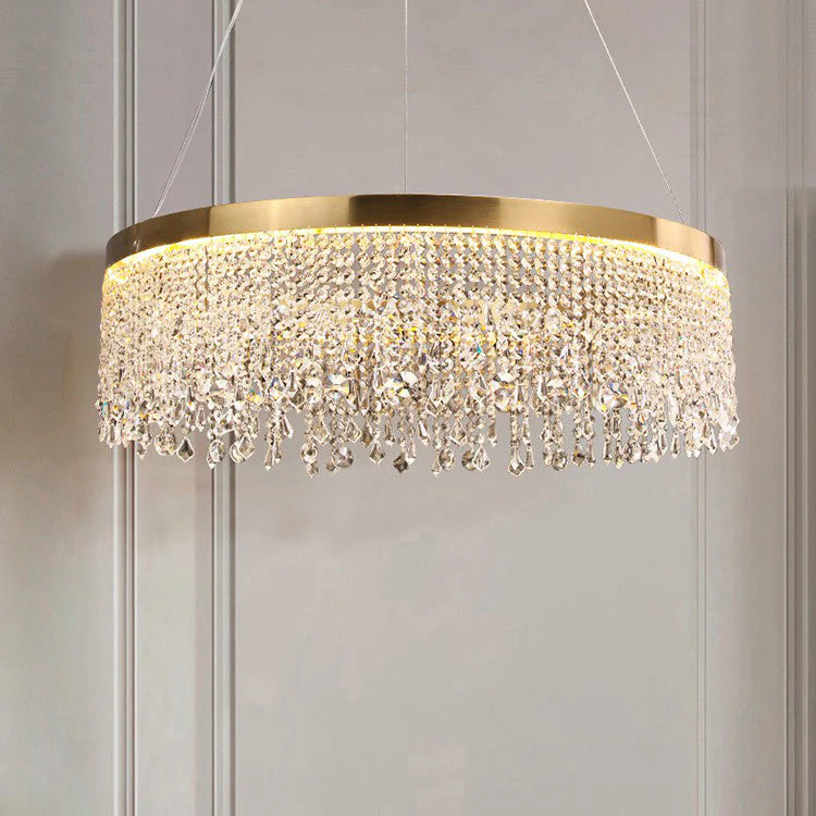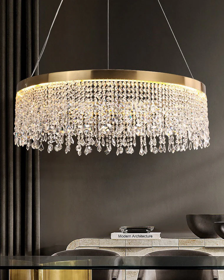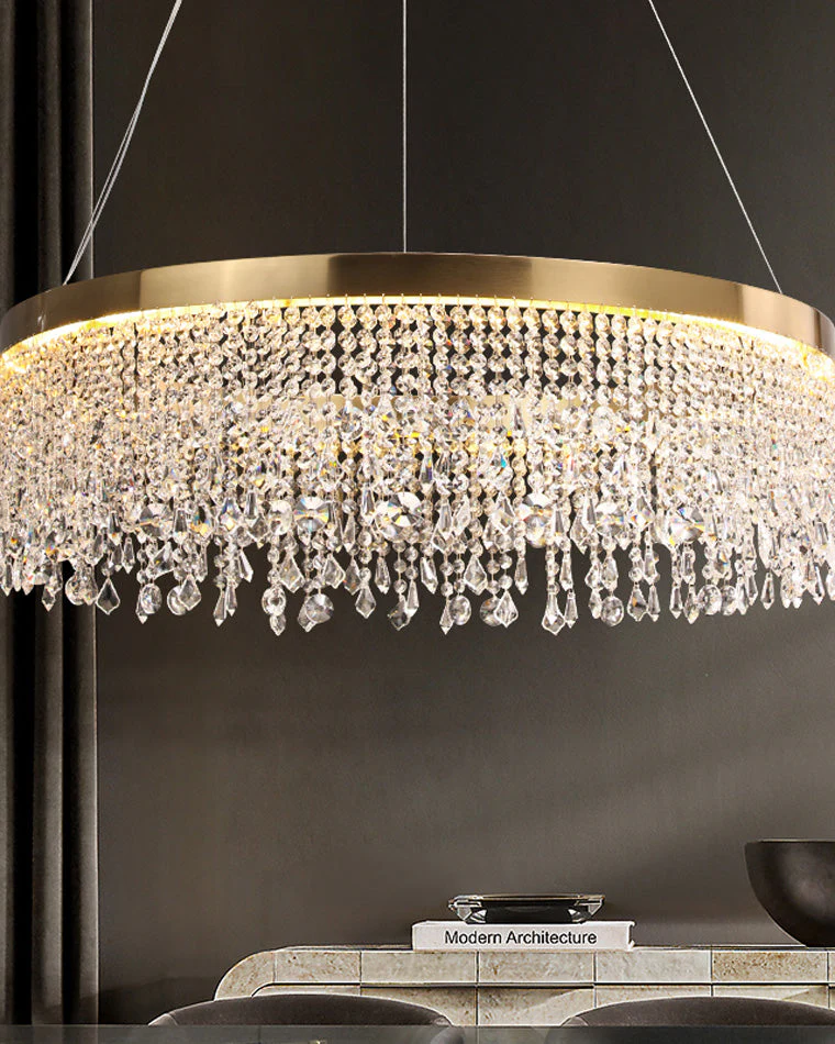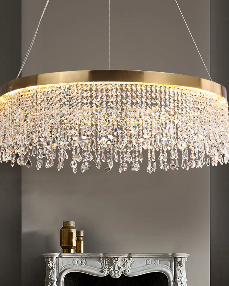 Lustre Solaris Rond en Cristal – Éclat Doré et Élégance Suspendue