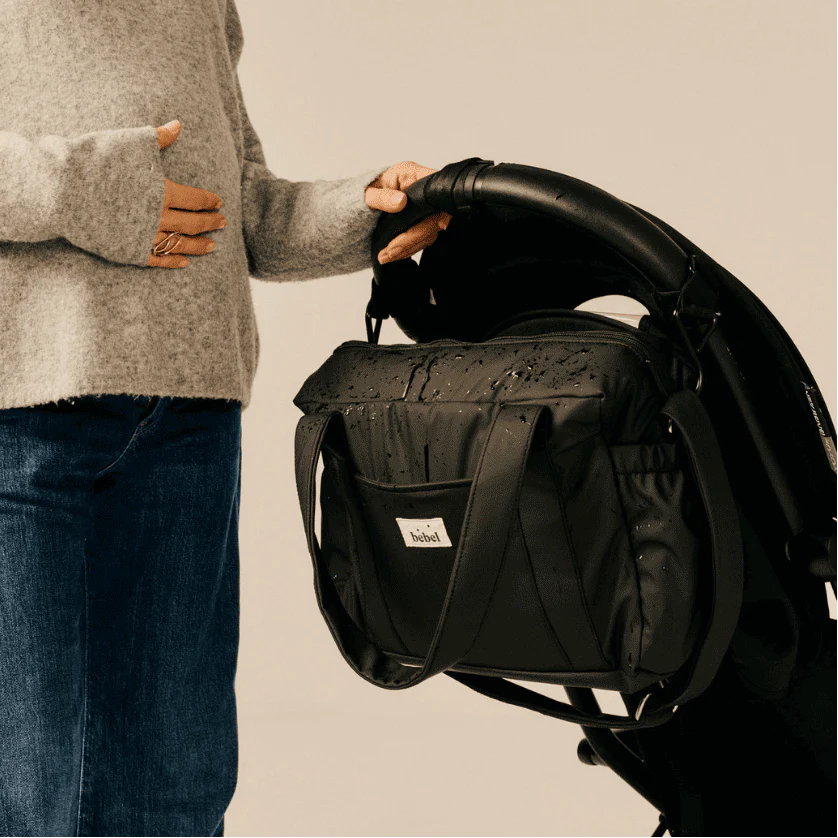 L’intérieur du sac, totalement imperméable, est composé de 2 poches plaquées et 2 poches à biberon et à l’extérieur 3 poches supplémentaires (2 poches élastiques sur les cotés et 1 poche à l’avant).