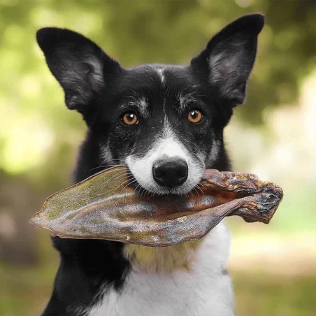 L’oreille de bœuf séchée au four est pauvre en matières grasses et assurera un moment de plaisir sans impacter la courbe de poids de votre chien, ni la flore intestinale.