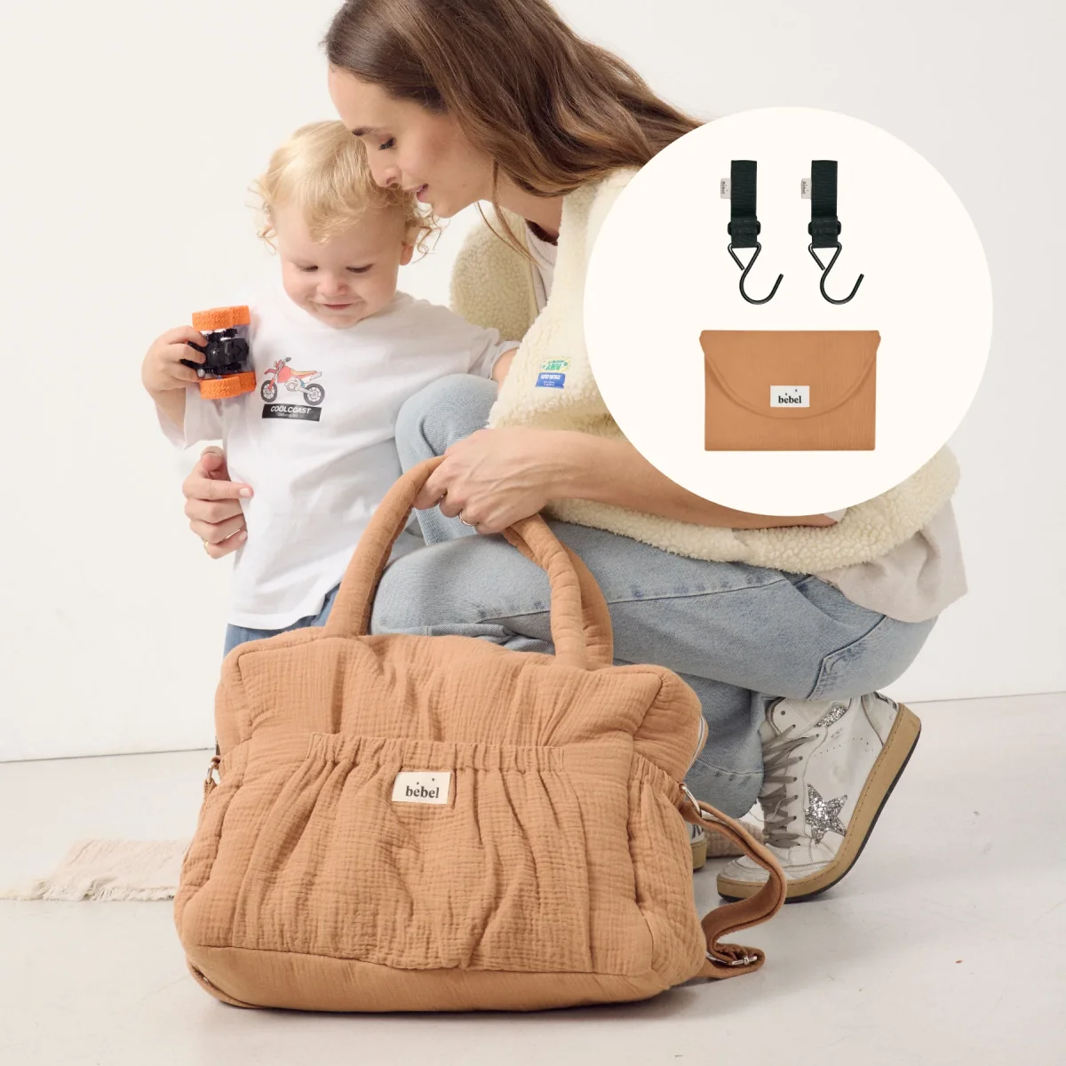 Cadeau idéal pour les futurs ou nouveaux parents, ce trousseau de naissance de la collection « Comme un bonbon » les accompagnera au quotidien pour faciliter leurs déplacements