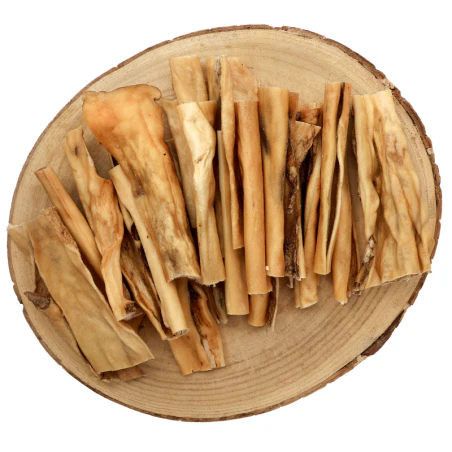 Elle est légèrement moins grasse que la peau de bœuf mais a le même pouvoir : Faire mastiquer votre toutou, ce qui lui procurera un moment de plaisir et de soin dentaire et reste surtout plus dure que la peau de bœuf.