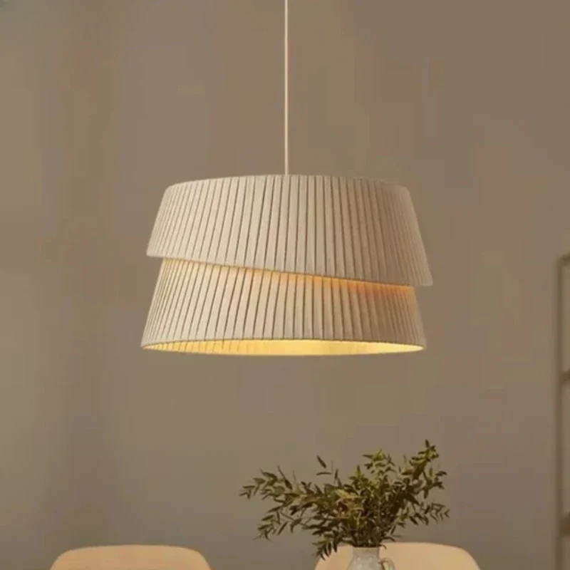 La Suspension Beige Cuisine allie design scandinave, abat-jour en tissu blanc et éclairage LED pour une ambiance moderne et raffinée.