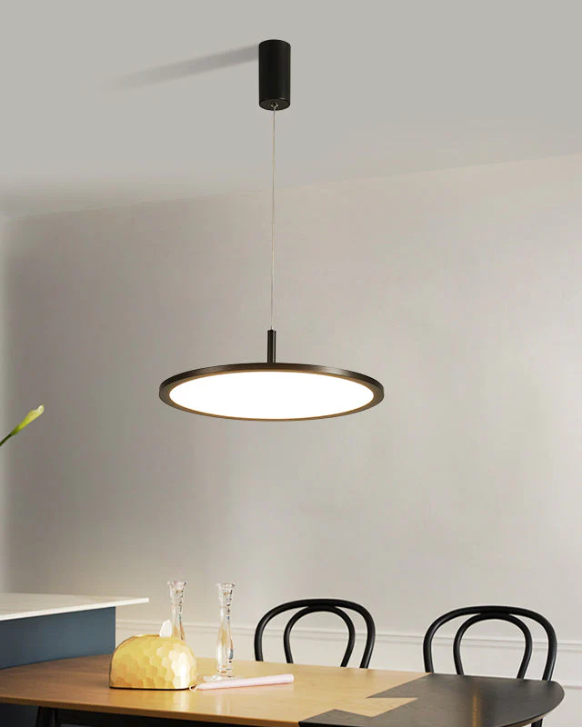 Apportez une touche de modernité saisissante à votre intérieur avec la Suspension Élégance Grand Disque. Son design rond, fin et minimaliste s’harmonise parfaitement avec les décors contemporains. Idéale pour une salle à manger, elle diffuse une lumière généreuse et élégante, sublimant votre espace avec sa structure métallique noire ou blanche.
