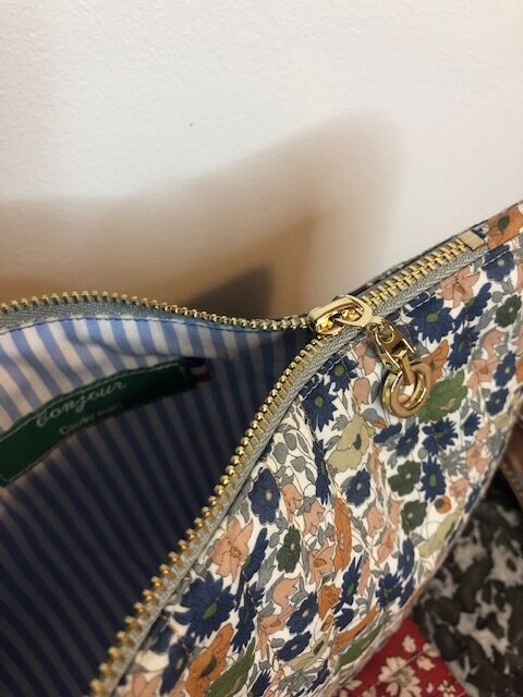 Du Liberty of London, une doublure assortie pour donner un look moderne, une fermeture éclair dorée ;