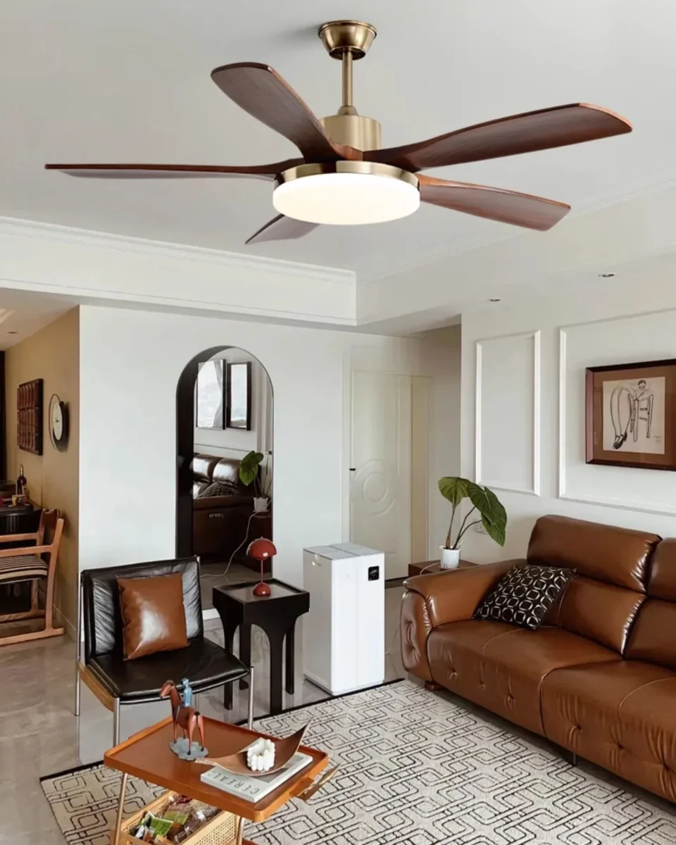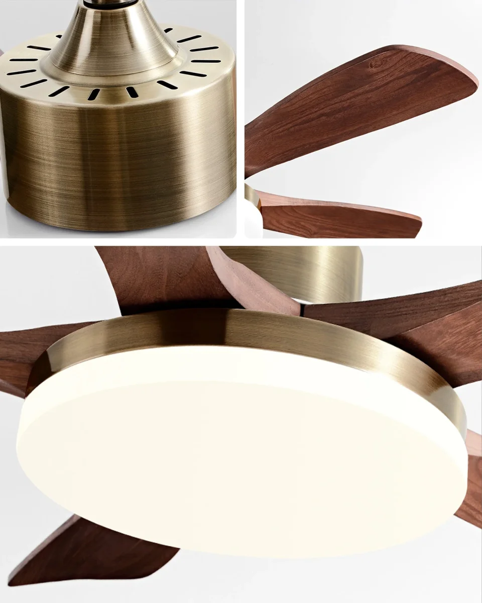 Ventilateur de Plafond Éclat Noyer – Bois Doré avec Lumière Vive